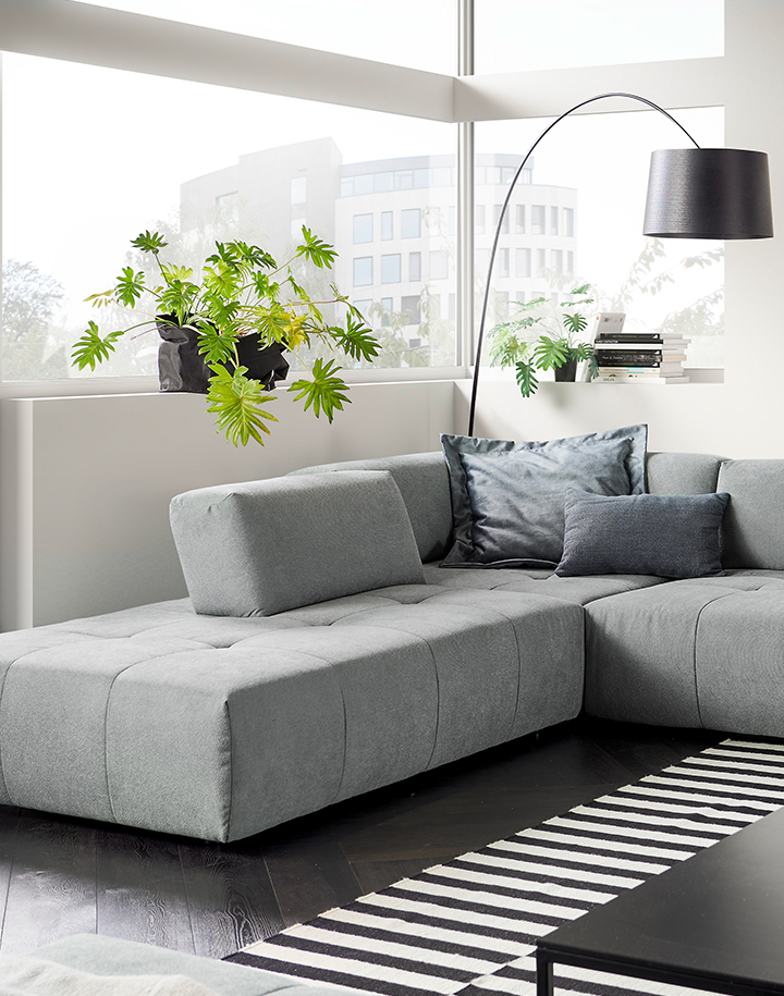 JUVI ist ein Modulsofa, welches sofort ausdrückt, wie du lebst und was du liebst: Einzigartig, selbstbewusst und geradlinig setzt es ein Statement an exklusivem Design in deinem Wohnzimmer. Die besondere Polsterung schafft einen luxuriösen Sitzkomfort, welcher auf Anhieb überrascht und zu langem Verweilen einlädt. Seine großen Sitzflächen laden ein, sich auszustrecken und die loungige Sitztiefe zu genießen. Dank der Rückentiefenverstellung (ausgenommen sind Longchairs und Eckmodule) hast du die Wahl: Die Rückenlehne kann in zwei Positionen fixiert werden - steht die Lehne hinten, hast du ein Maximum an Sitztiefe, verstellst du sie nach vorne, sorgt dies für eine aufrechte Sitzposition. Durch die vielfältigen Kombinationsmöglichkeiten kannst du mit JUVI genau das Sofa kreieren, welches optimal in dein Leben und in deine vier Wände passt.